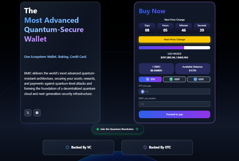 Per gli investitori che si preoccupano di dove stia andando l’infrastruttura crypto — e non solo di cosa si stia muovendo in questo momento — BMIC rappresenta un tipo diverso di prevendita. Un progetto che tratta la sicurezza come qualcosa che deve invecchiare bene, non solo funzionare il primo giorno. Questa visione a lungo termine è il motivo per cui alcuni stanno iniziando a includere BMIC nelle conversazioni sulle migliori crypto da comprare mentre il mercato guarda oltre il prossimo ciclo.