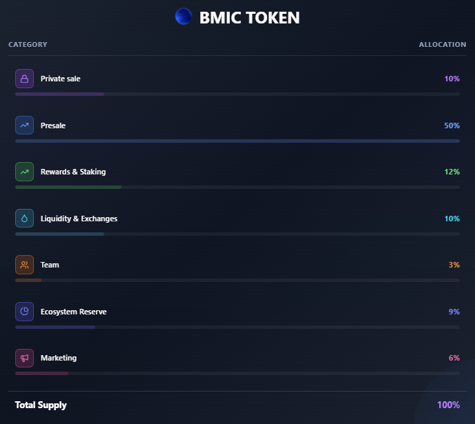 Tokenomics e opportunità di prevendita di BMIC