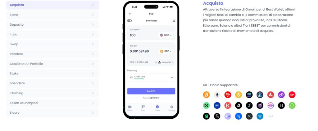 Con Best Wallet puoi generare un portafoglio multi-blockchain in grado di conservare criptovalute provenienti da reti diverse. È come avere un unico wallet che accetta più valute: euro, dollari, yen.