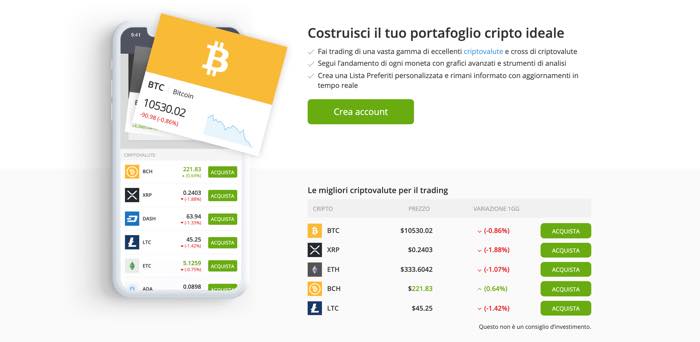 Data la crescente popolarità delle criptovalute come strumenti di trading online anche nel day-to-day, sempre più broker mettono in vetrina la possibilità di comprare, vendere e scambiare criptovalute sotto forma di CFD all’interno della loro piattaforma. Tra i tanti broker a dare questa possibilità, oltre ad XTB abbiamo identificato tre piattaforme che offrono condizioni estremamente competitive.