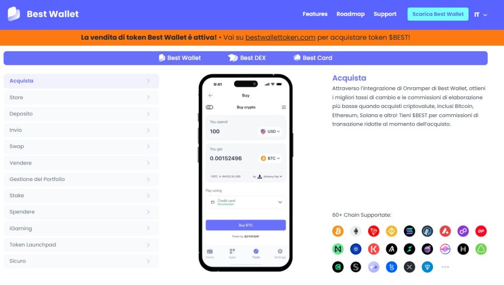 Basta collegare un wallet compatibile sul sito ufficiale, scegliere il token di pagamento e confermare l’acquisto tramite il widget dedicato.