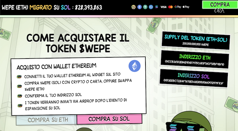 Consigliamo di utilizzare SOL, in quanto garantisce transazioni rapide, costi ridotti e accesso immediato a $WEPE sulla blockchain Solana.