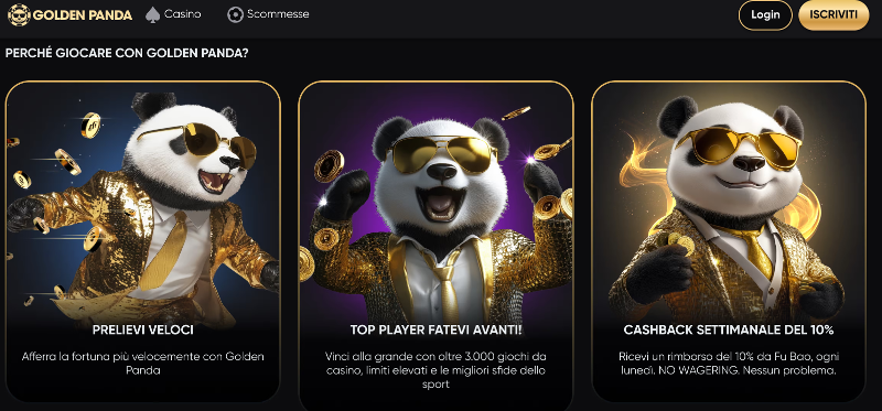 4. Golden Panda – Deposito minimo 1 euro su oltre 1.000 giochi