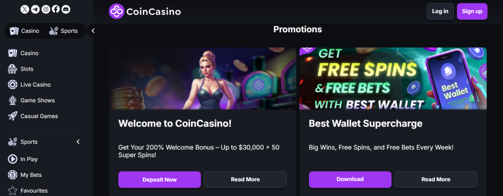 2. CoinCasino – Casino con deposito minimo 1 euro 100% sicuro