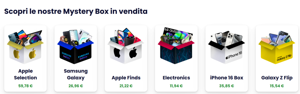 Ad esempio, in una Box da 20€ si potrebbe vincere una cassa bluetooth da 150€, che si potrebbe facilmente rivendere online su siti come Vinted o eBay a poco meno del prezzo di mercato, rendendo così anche le Mystery Box un buon modo per fare soldi online