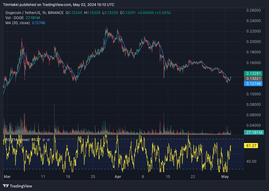 Al momento DOGE è scambiato a $0,1323. È circa il 12% in meno rispetto alla settimana scorsa, il che rende la prima criptovaluta ispirata al meme del cane Shiba Inu una delle più colpite dalle perdite negli ultimi sette giorni.