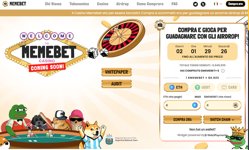 Gli analisti hanno individuato in Memebet Token (MEMEBETS) un progetto promettente, che si colloca a cavallo tra il mondo delle meme coin e quello in rapida crescita del GambleFi.