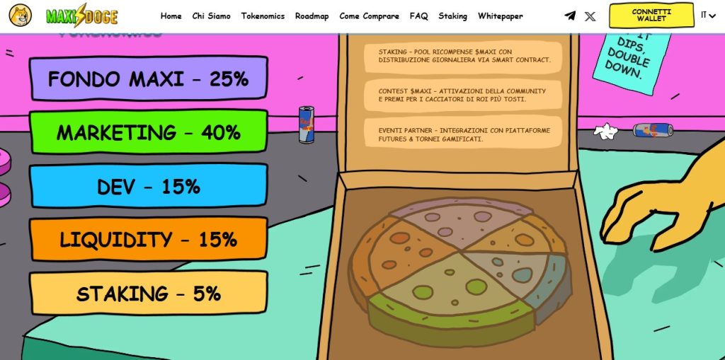 Maxi Doge punta tutto su un approccio estremo. Con il Maxi Fund, fino al 25% dei fondi raccolti nella presale viene reinvestito nei token più caldi del ciclo, utilizzando leve esagerate fino a 1000X. Una strategia rischiosa, certo, ma che alimenta l’immaginario di chi cerca emozioni forti.