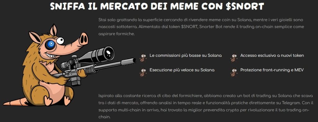 Se dovesse ripetere la corsa virale di Banana Gun, arrivata fino a 78,70 dollari nei mesi successivi al lancio, Snorter potrebbe diventare la bandiera dei bot su Solana. Unendo ironia e utilità concreta, parla sia alla community retail sia ai trader veloci.